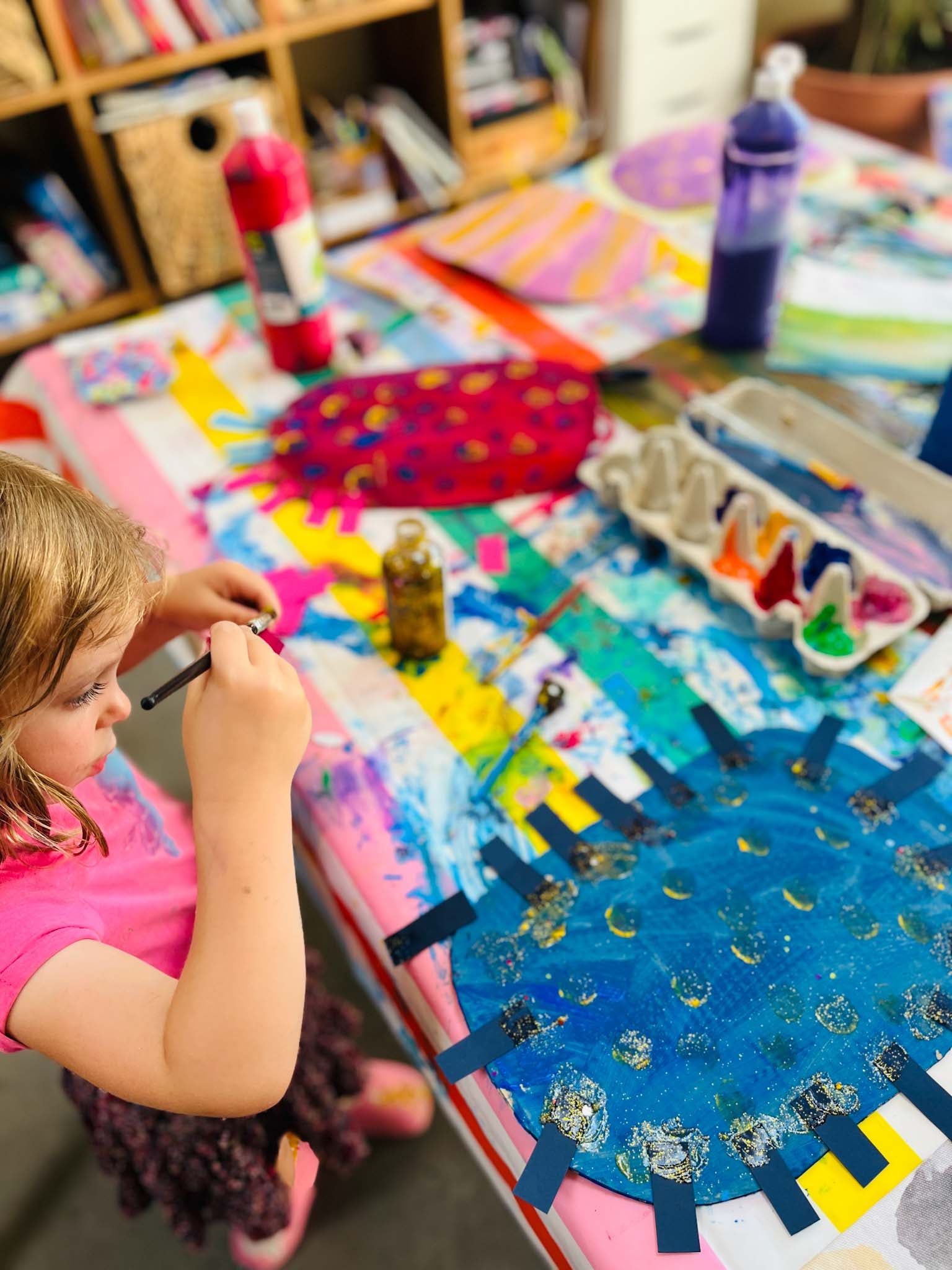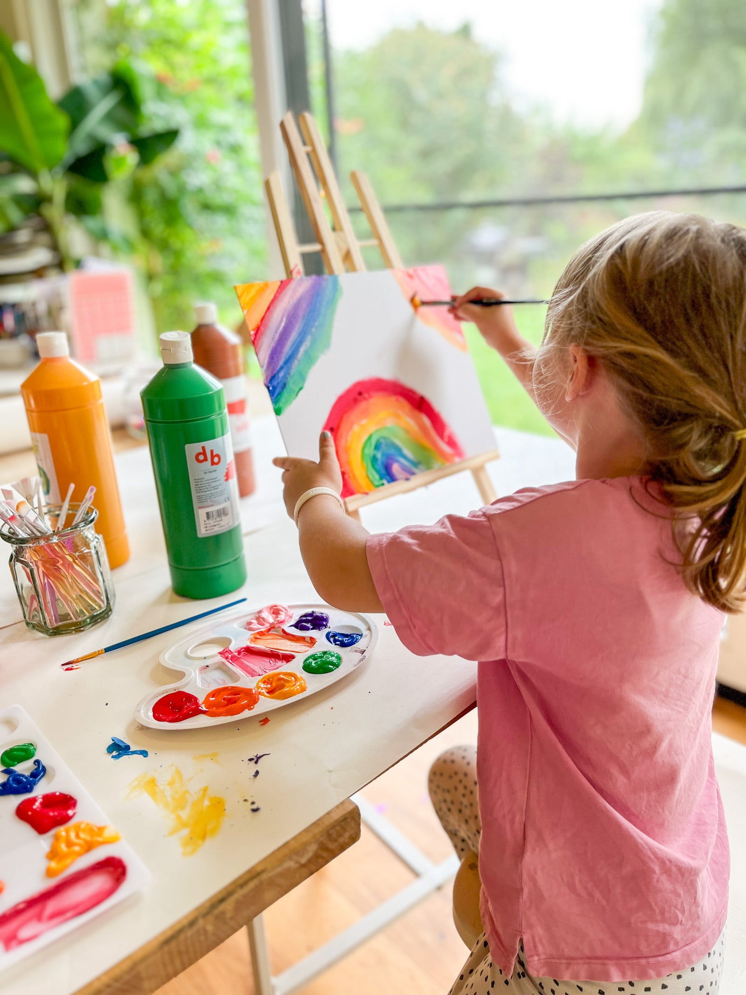 In ons atelier draait alles om experimenteren, spelen met kleuren en materialen, en vooral: plezier beleven aan kunst maken. We geven creatieve vrijheid aan kinderen en gemoedsrust aan ouders.